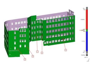 We undertake high‑accuracy laser scan surveys for existing buildings, supporting design teams with precise dimensional data. Our processing includes point‑cloud comparison, movement assessments and targeted manual monitoring when required.